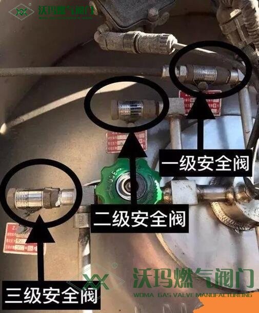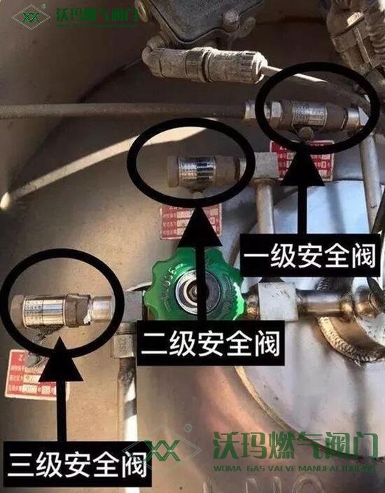 以下圖新款氣瓶為例,共三級(jí)(個(gè))安全閥,設(shè)定自動(dòng)開(kāi)啟壓力分別為1.90、2.4、2.85Mpa。也就是如果氣瓶故障時(shí),先升溫后升壓直至爆炸,需要三個(gè)安全閥全部同時(shí)失效,而這個(gè)幾率,約等于零!
